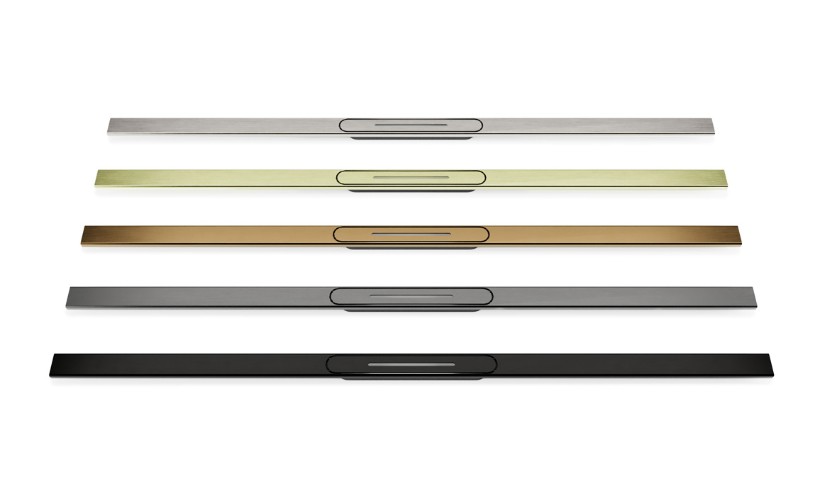 - 5 finitions de caniveau assorties aux robinetteries actuelles : ▫️ Stainless Steel, Light Gold, Copper, Gunmetal Black, Metal Black